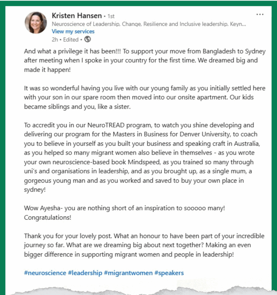 In just three years, I have expanded my impact from Australia to global audiences across the US, Europe, Asia, and the Middle East, speaking on stages, consulting and collaborating with leaders across industries.
